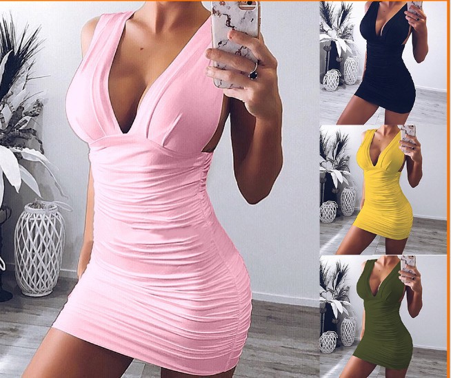 Fashion Temperament Spring New Product Sling Tight-fitting Pleated Dress